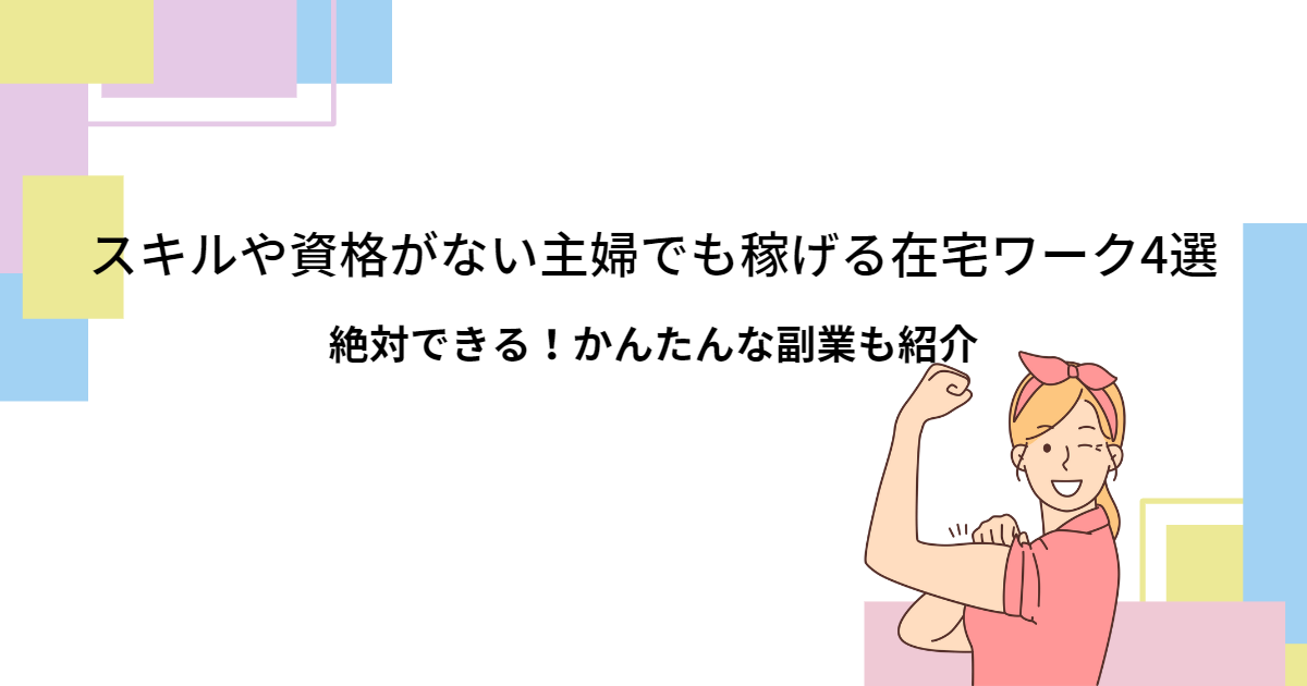 では、特別なスキルがない主婦でも始められる副業を4つご紹介します。